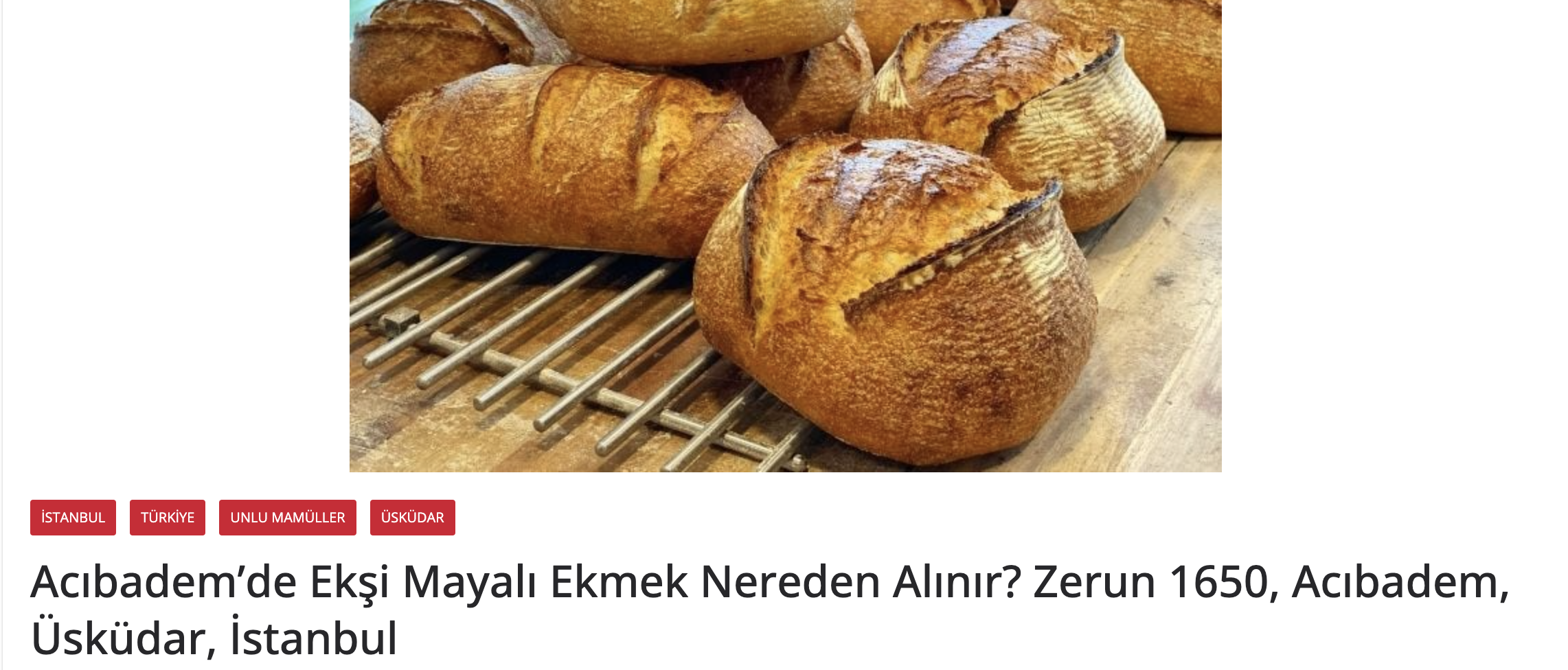 Acıbadem’de Ekşi Mayalı Ekmek Nereden Alınır? Zerun 1650, Acıbadem, Üsküdar, İstanbul, 6 Temmuz 2021